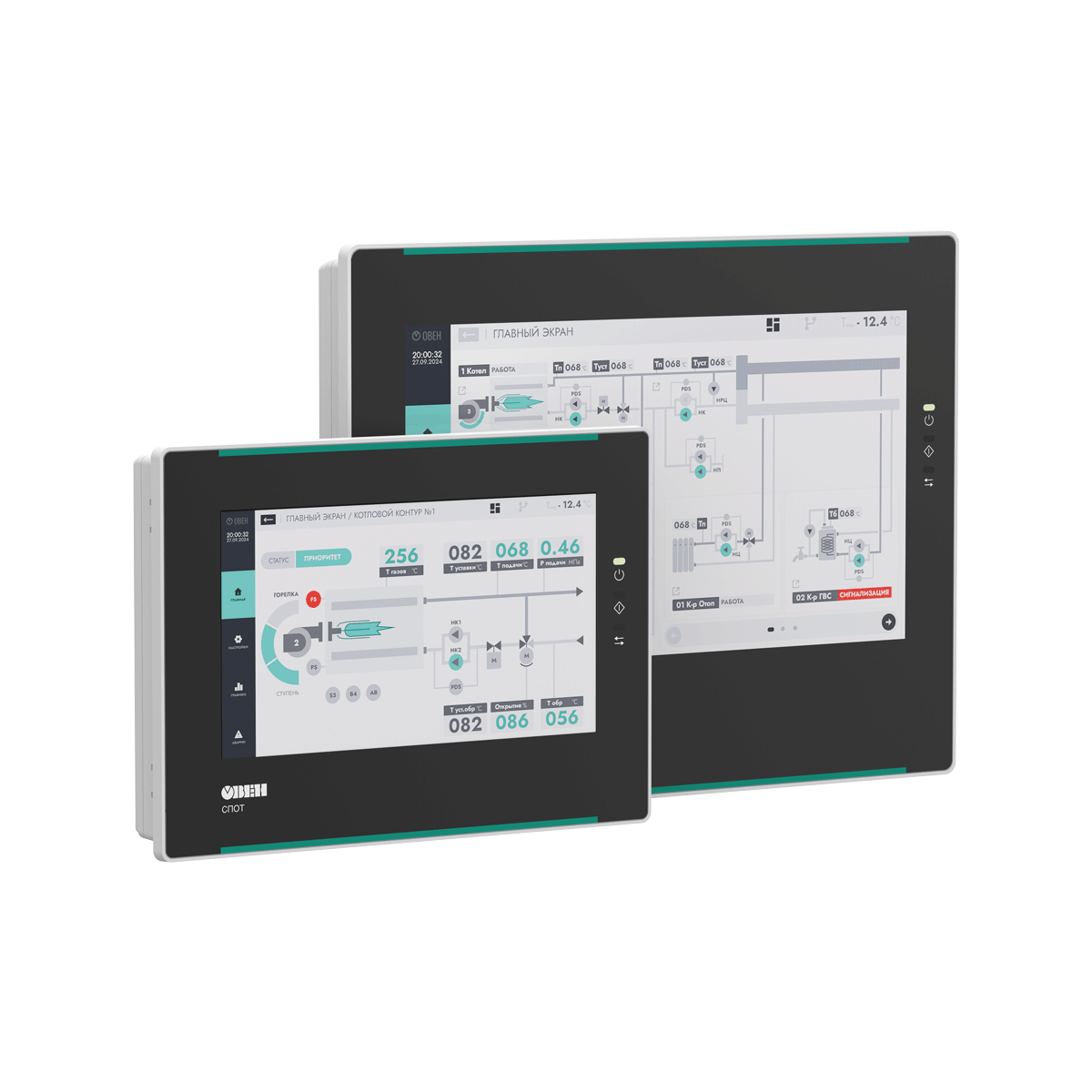 <p>СПОТ – специализированная панель оператора, разработанная для работы с контроллером <span href="https://owen.ru/product/ktr121" target="_blank" data-pjax="0">КТР-121</span>. Панель поставляется с готовым интерфейсом, поэтому не требует программирования и разработки дизайна. </p> <p>СПОТ определяет состав подключенных приборов, обеспечивает удобную навигацию между ними, предоставляет доступ ко всем параметрам, ведет архивы аварий и событий и отображает данные в виде графиков.</p> <h3>Преимущества </h3> <div style="text-align: center;"> <style>b { font-size: 17px;}.small_screen{ display: block;}.menu { display:inline-block; width: 400px;min-height: 150px;max-width: 90%; margin: 10px; padding: 5px;vertical-align: top; border-radius: 3px;font-family: roboto; }.menu_text, .menu_text2, .menu_img{ display: inline-table;vertical-align: middle;}.menu_img{ float:left; text-align: center; }.menu_text { width: 70%;font-size: 14px; color: #009999;font-family: roboto; line-height: 1.2em;padding-top: 10px;text-align: left;}.menu_text2 { padding-left: 10px;font-size: 14px;text-align: left;font-weight: 300; }</style> <div class="small_screen"> <div class="menu"> <div> <div class="menu_img"><img alt="Готовая визуализация без программирования " src="https://owen.ru/uploads/182/universalnost-ktr-121.png" style="width: 70px; height: 70px;" title="Готовая визуализация без программирования " /></div> <div class="menu_text">Готовая визуализация без программирования</div> </div> <div class="menu_text2">Интерфейс панели разработан для работы с КТР-121. Готовое решение позволяет быстро ввести устройство в эксплуатацию, сэкономив время и ресурсы на разработке дизайна и программировании.</div> </div> <div class="menu"> <div> <div class="menu_img"><img alt="Быстрый ввод в эксплуатацию" src="https://owen.ru/uploads/183/sertifikacziya-ktr-121_2.png" style="width: 70px; height: 70px;" title="Быстрый ввод в эксплуатацию" /></div> <div class="menu_text">Быстрый ввод в эксплуатацию</div> </div> <div class="menu_text2">Панель готова к работе сразу после подключения. СПОТ адаптирует визуализацию под подключенную группу приборов и дает возможность настраивать их с панели – без необходимости конфигурировать каждый контроллер отдельно.</div> </div> <div class="menu"> <div> <div class="menu_img"><img alt="Расширение функциональных возможностей контроллеров" src="https://owen.ru/uploads/183/vzaimozamenyaemost-ktr-121.png" style="width: 70px; height: 70px;" title="Расширение функциональных возможностей контроллеров" /></div> <div class="menu_text">Расширение функциональных возможностей контроллера</div> </div> <div class="menu_text2">СПОТ дополняет КТР-121 расширенными архивами аварий. Построение графиков облегчает настройку ПИД-регуляторов и повышает эффективность эксплуатации.</div> </div> <div class="menu"> <div> <div class="menu_img"><img alt="RS-485 и Ethernet для диспетчеризации" src="https://owen.ru/uploads/183/pogodozavisimost-ktr-121_2.png" style="width: 70px; height: 70px;" title="RS-485 и Ethernet для диспетчеризации" /></div> <div class="menu_text">RS-485 и Ethernet для диспетчеризации</div> </div> <div class="menu_text2">Два интерфейса RS-485 и один Ethernet позволяют подключать приборы к панели и интегрировать в SCADA, облачные сервисы и другие системы верхнего уровня для удалённого мониторинга и управления.</div> </div> </div> </div> <h3>Пример применения </h3> <p><span class="image-center image-zoom" href="https://owen.ru/uploads/563/topologiya_spot-02.svg" title="Пример применения СПОТ" rel="pagegal" style="width:800px;height:333px;" data-pjax="0"><img alt="Пример применения СПОТ" src="https://owen.ru/uploads/563/topologiya_spot-02.svg" style="" title="Пример применения СПОТ" class="" /></span></p> <div id="w40353" class="j-collapse-widget panel-group"> <div class="panel panel-default"><div class="panel-heading"><h4 class="panel-title"><span class="collapse-toggle collapsed" href="https://owen.ru/#w40353-collapse1" data-toggle="collapse" data-parent="#w40353" data-pjax="0">Интерфейсы и адреса для подключения ведомых устройств</span> </h4></div> <div id="w40353-collapse1" class="panel-collapse collapse"><div class="panel-body"><p>RS-485 Master на панели предназначен для подключения контроллеров КТР-121, RS-485 Slave и Ethernet предназначены для организации диспетчеризации (<em>прямое подключение к OwenCloud по Ethernet не поддерживается</em>)</p> <div