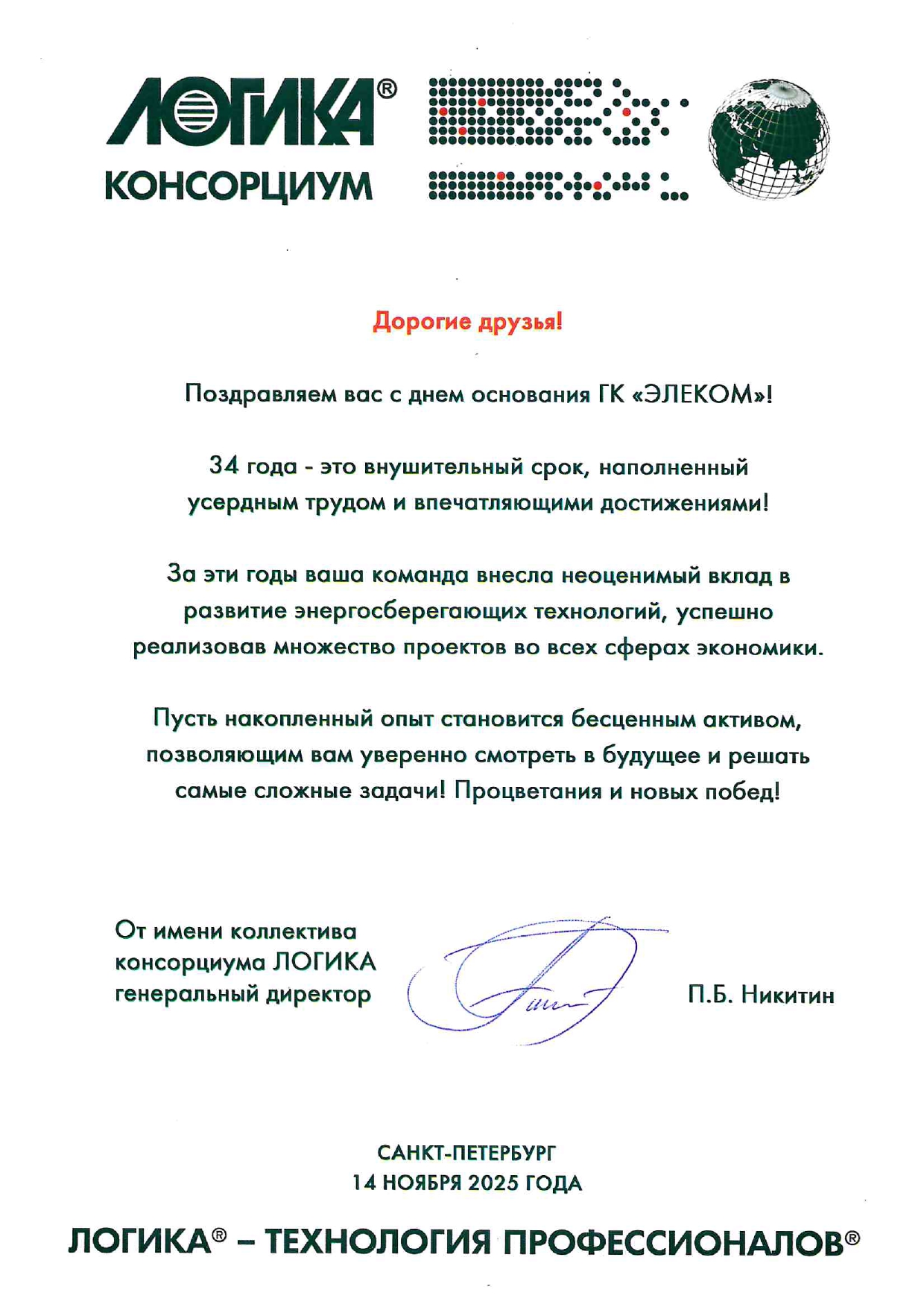 Благодарим нашего Партнера - завод ЛОГИКА за поздравление!