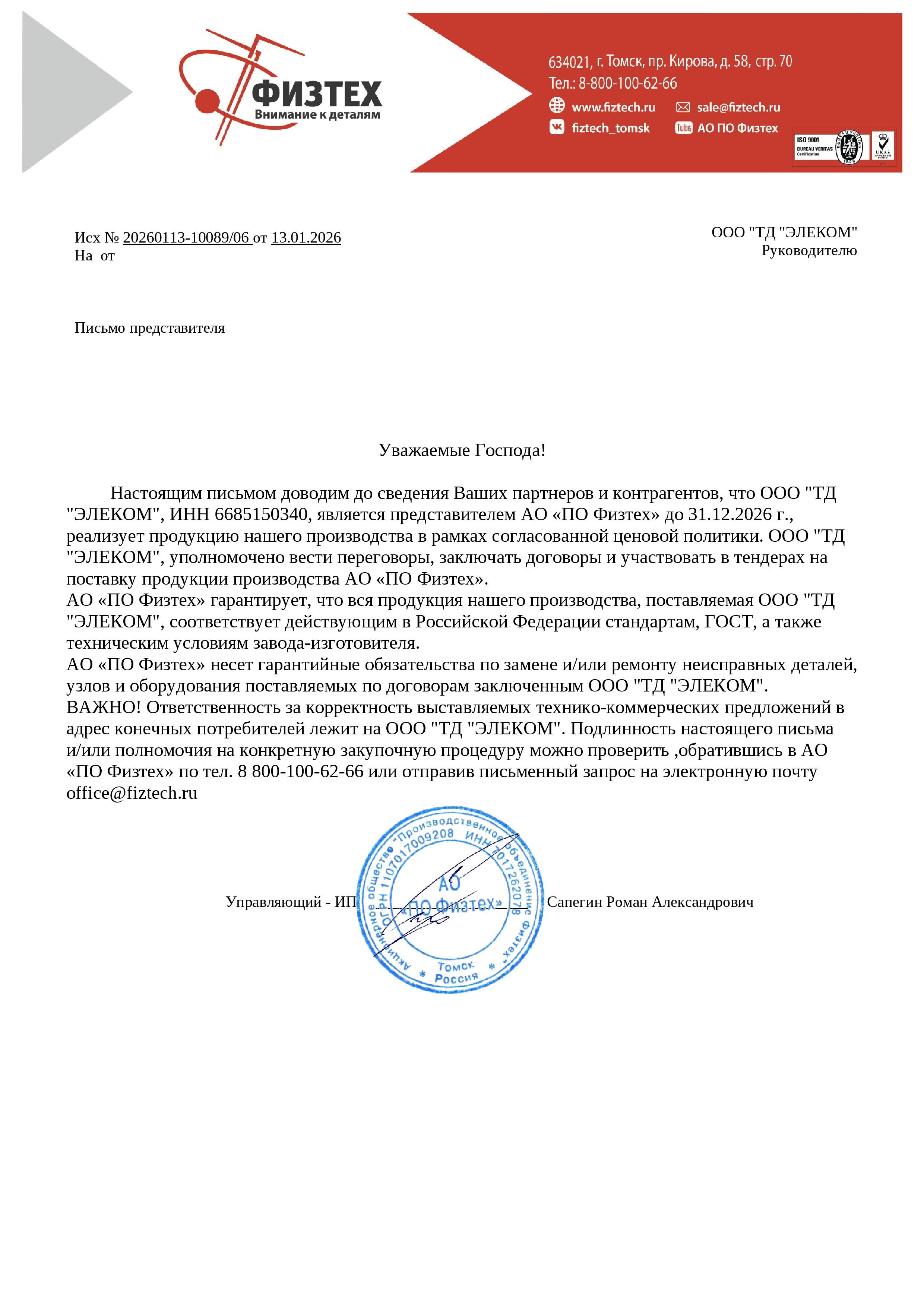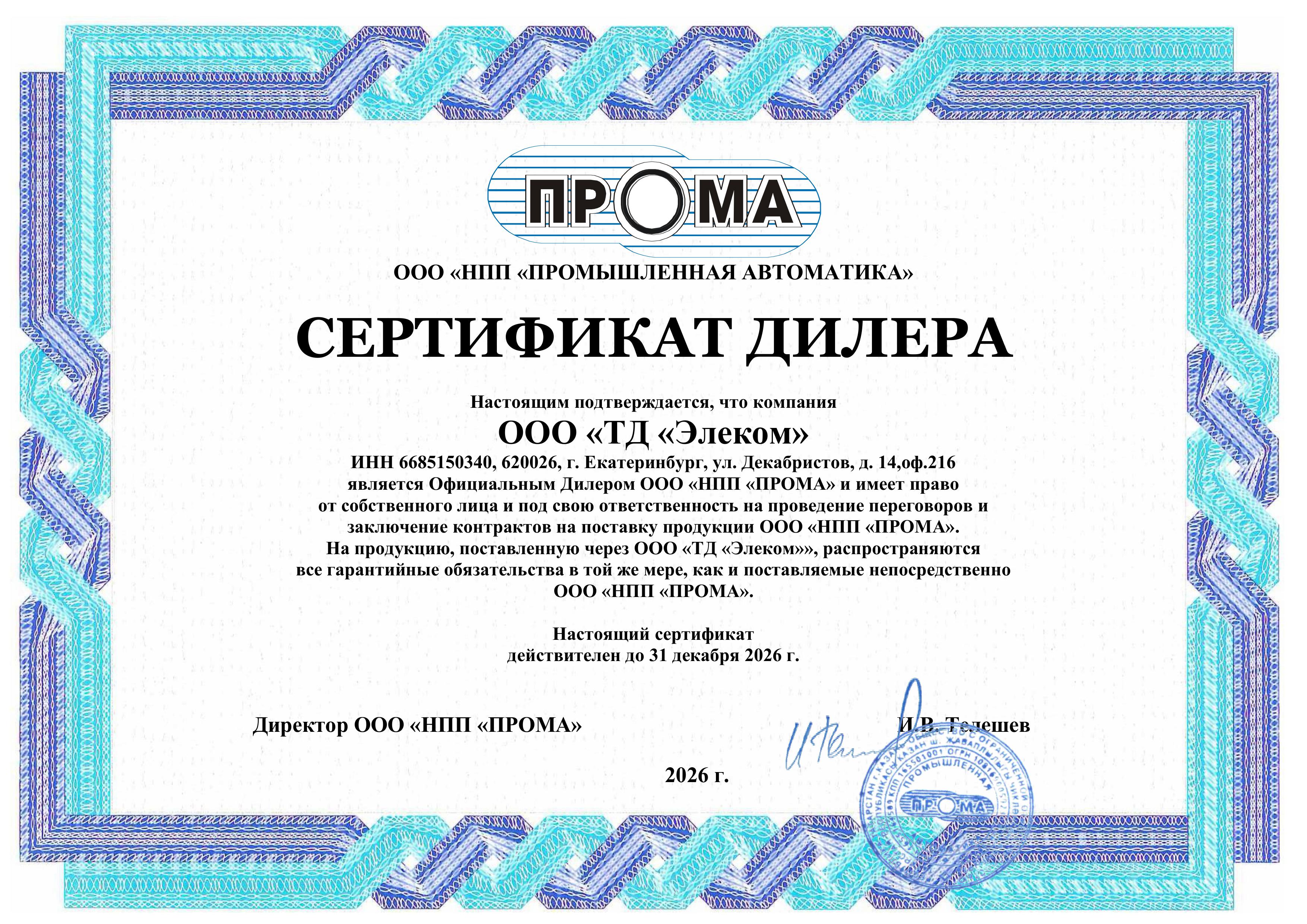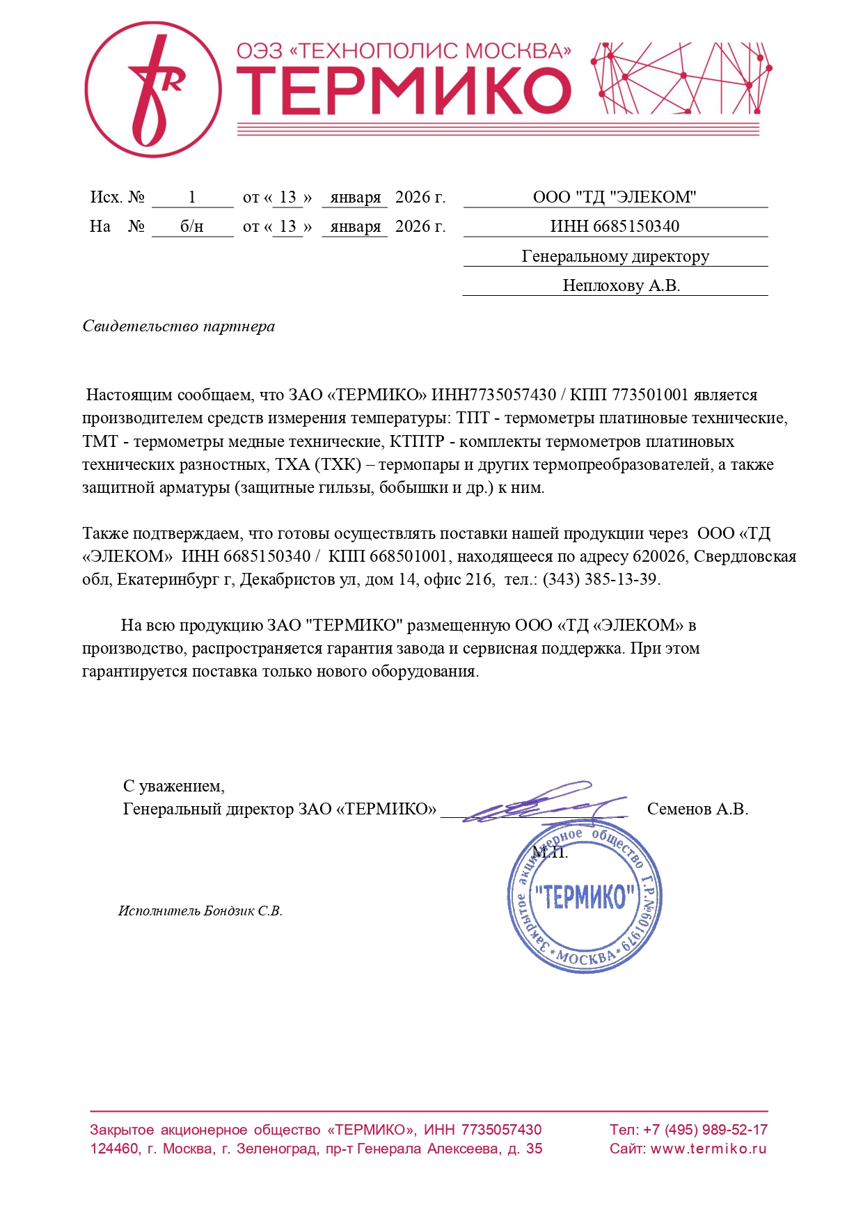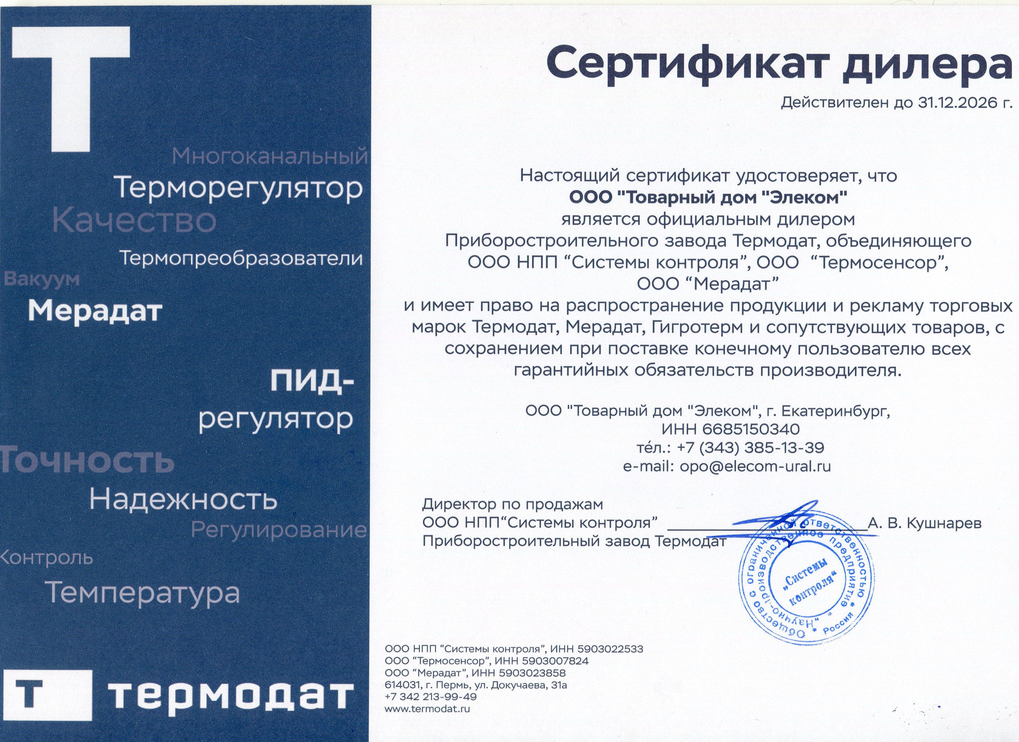 ЭЛЕКОМ - почетный партнер завода Термотроник